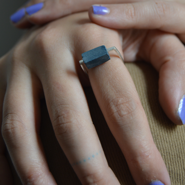 Plata 925 + Pasta coloreada con óxido de cobalto, sin esmalte, horneado a 1230°.