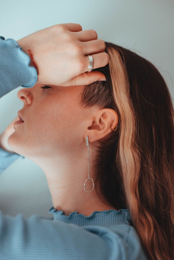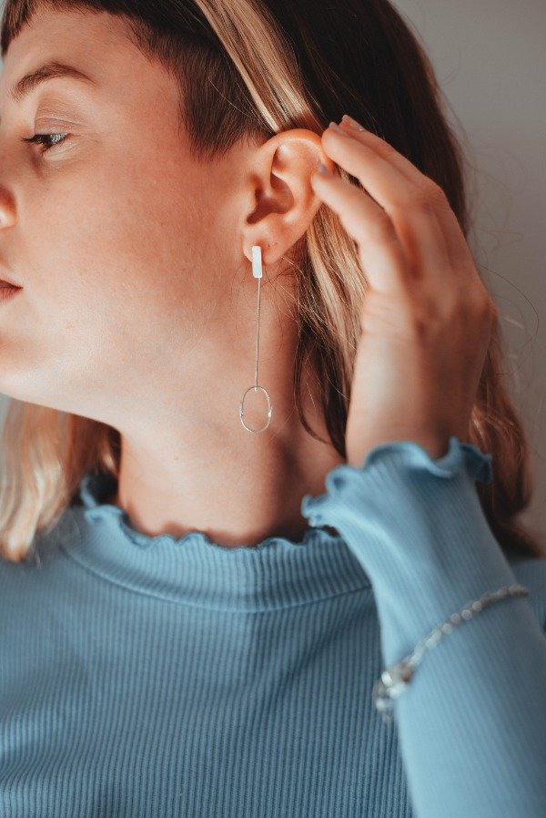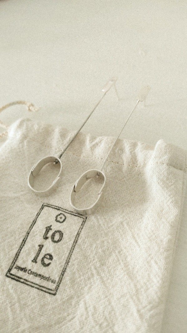 Par de aros colgantes, en la parte inferior se encuentra un óvalo conformado por pliegues. Hechos a mano en Plata 925.